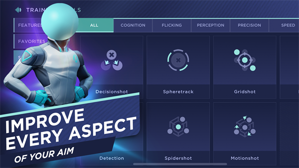 在反应时间、目标检测和精准度等六个不同类别中训练瞄准,既能获得全面的瞄准训练体验,也能专注于游戏中的特定元素。
