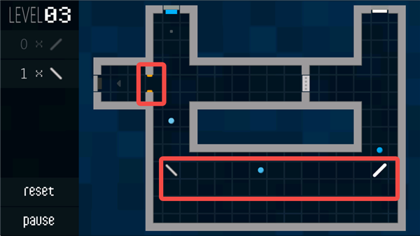 3、引导子弹穿过复杂障碍,最终抵达终点出口。