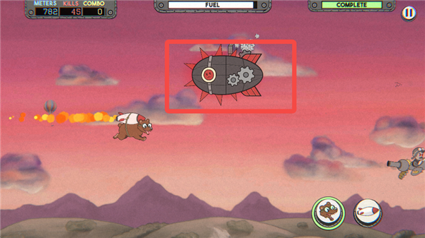 3、前面的那些带刺的飞艇会损坏你的燃料箱,要躲远点。