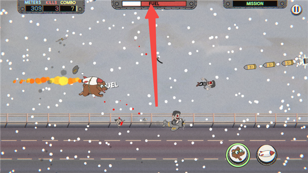 2、你的火箭是靠愤怒驱动的,需要撞击敌人来补充燃料。