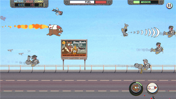 作为喷气动力熊翱翔天际,释放你内心的狂野。撞击敌方飞机、用喷气火焰将飞行员空中烤熟,或者发出震天怒吼,把敌人从座舱中吓飞,让他们的飞机在混乱的卡通风格中相互撞毁!