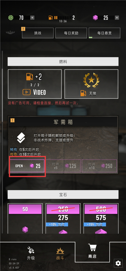 8、玩家可用钻石来开宝箱,可获得战术炸弹等装备。