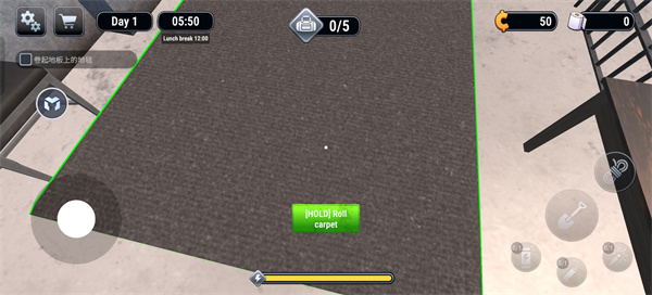 2、随后玩家需要卷起地毯,长按下方的“绿键”。
