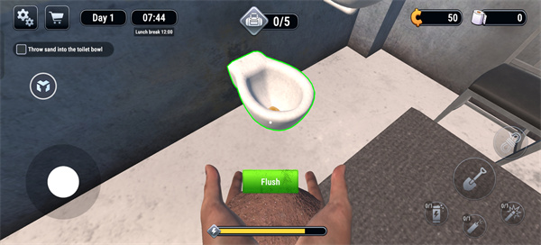 7、再将床头的泥土丢进厕所。