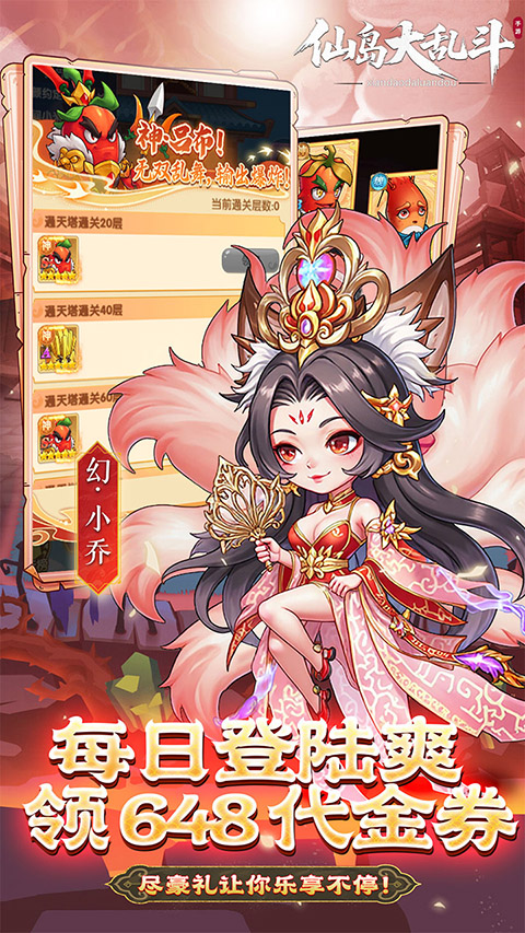 此外,游戏还有一些独特的创意玩法,比如“僵尸来袭”、“神将试炼”等,让整个战斗过程充满惊喜和乐趣。总体来看,《仙岛大乱斗》不仅是一款策略卡牌手游,更是一个充满创意和福利的三国世界,对于喜欢轻松幽默又追求战力提升的玩家来说,这款游戏绝对不容错过!