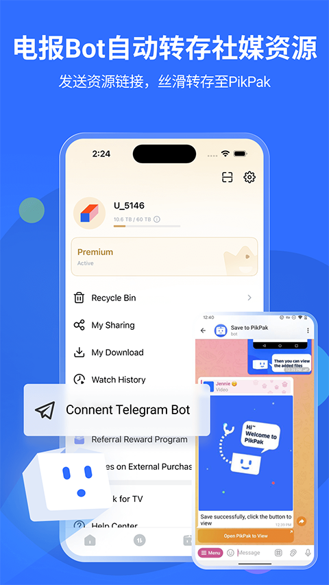 PikPak的免费版提供6GB空间,付费的话可以达到10TB,满足不同用户的需求。最特别的是它的“边下边播”功能,把视频链接发给机器人就能直接看,省事多了。还有在线编辑文档、设置文件有效期和密码、一键转存等功能,用起来很灵活。