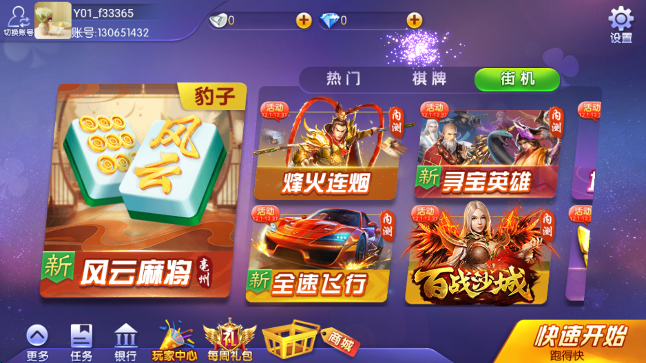 6、游戏中除却棋牌类游戏之外,还有烽火连烟,全速飞行,寻宝英雄以及百战沙城等经典游戏可供玩家游玩。