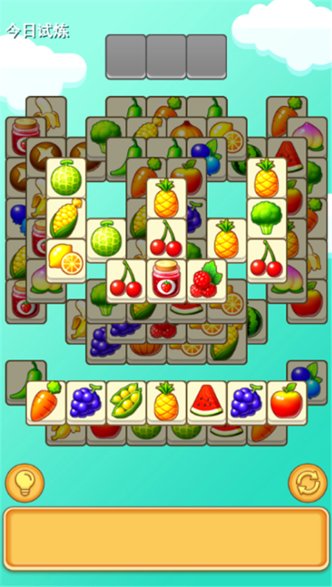 天天消消乐是一款三消游戏。玩家进入关卡选择相应水果方块,当拥有3个相同的水果即可进行消除,类似于羊了个羊的玩法,将关卡中全部的水果方块消除即可通关解锁下一关,随着关卡的增加难度也随之提升。同时,游戏中还提供今日试炼玩法,难度极高,玩家需要根据场中水果筛选放置,稍有不慎可能就无法进行消除而失败,非常可以玩家的思考能力!