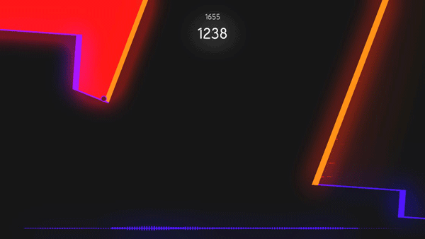 3、随着音乐的节奏,线条的速度也会越来越快,你需要更好的操纵你的霓虹小球,进行准确的跳跃。