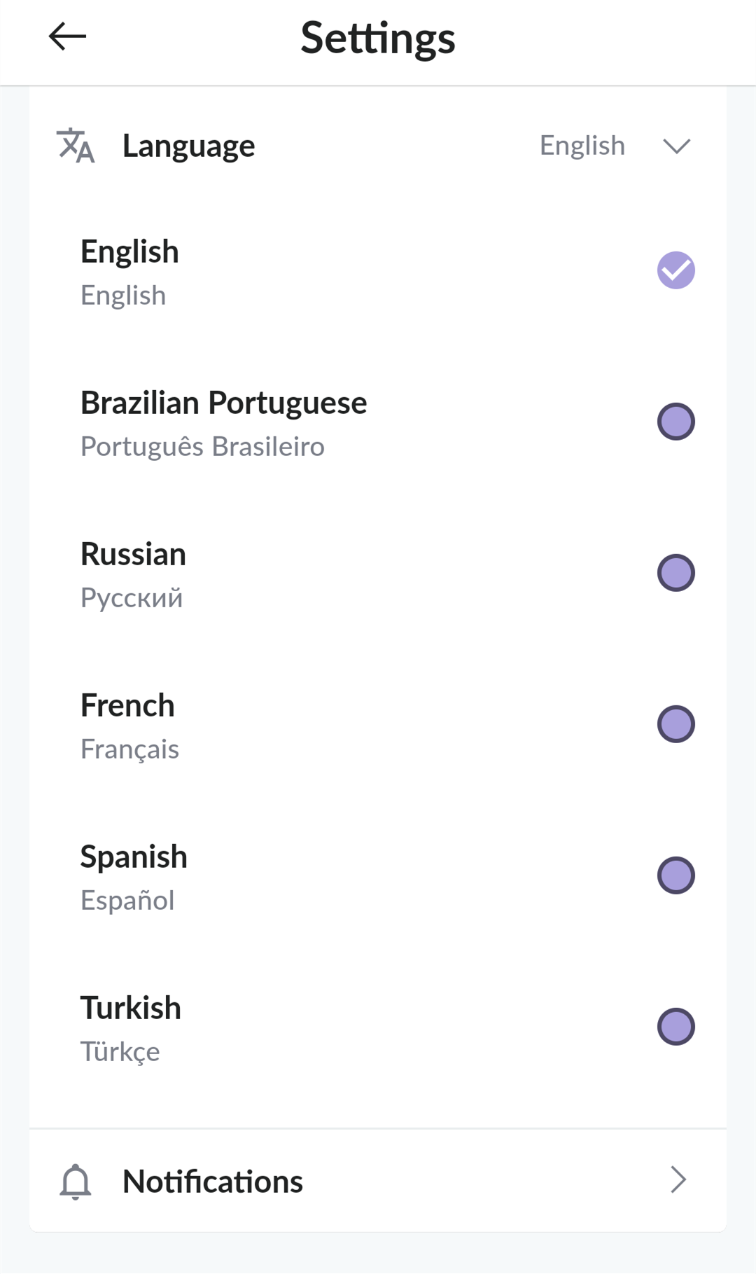 everskies暂时不支持切换中文语言,设置界面仅支持切换英语、巴西葡萄牙语、俄语、法语、西班牙语、土耳其语。