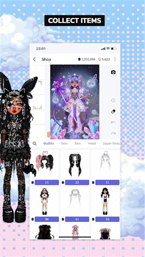 2、点击“shop”,可以看到有很多成套的精致服装,它们分别对应不同价格。