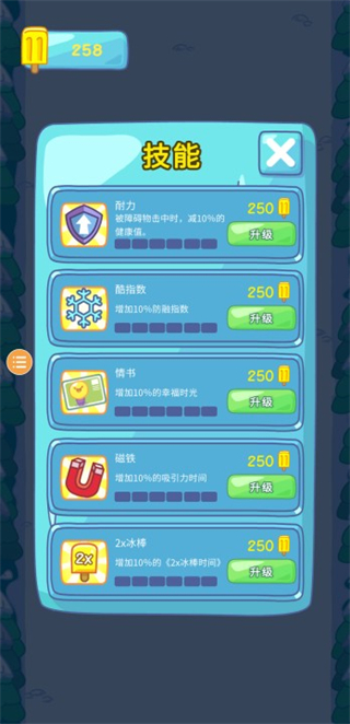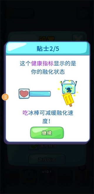 2、屏幕上方的健康指标是雪糕的融化状态,吃冰棍可减缓融化速度!