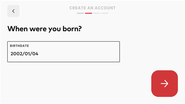 3、输入自己的出生日期,尽量往成年了填,不然可能会受到限制。