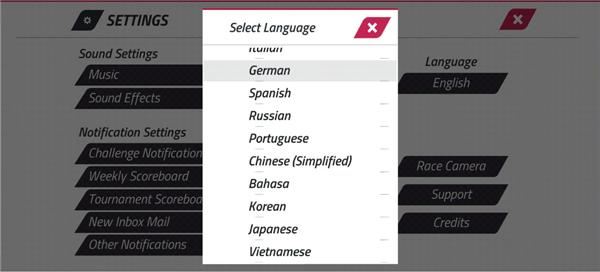 3、点击右侧language按钮选择Chinesej即可完成设置!