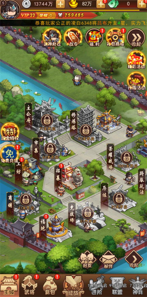 1、充值比例0.5:1000,全场道具买断直接拉满,爽玩三国战场。