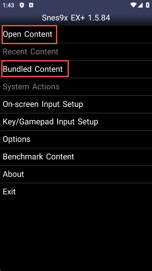 1、运行该模拟器后,点击“Open Content”可以启动用户自行下载的游戏资源,点击“Bundled Content”可以启动模拟器自带游戏。