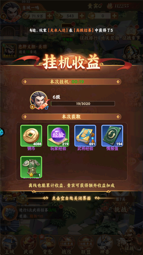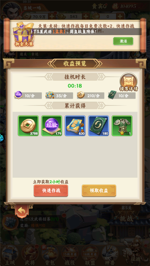 3、最重要的[挂机收益],超出上限是无法累计的,需要及时收取。
