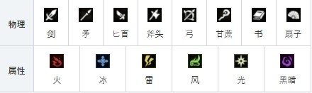 武器的攻击类型(物攻)有8种,分别为剑,矛,匕首,斧头,弓,法杖,书本,扇子