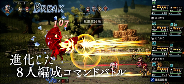 八方旅人大陆的霸者日服支持8人组队战斗,涵盖剑士、舞者、商人、学者、药师、盗贼、狼人、神官等职业,玩家需要弱点击破、前后排交替等机制对抗敌人。玩家还可在小镇里与NPC们互动,如进行情报询问、购买物品、雇佣等,在他们这获取多样丰富的资源。