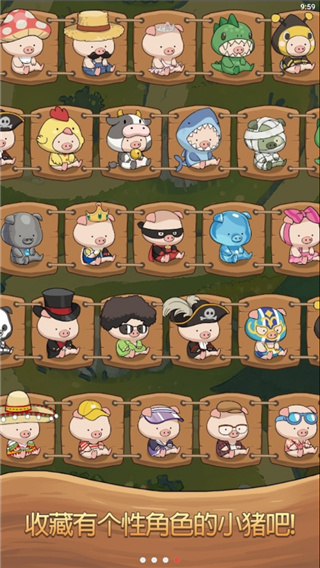 4、超多可爱的小猪角色可以收集,利用你的手指来尽情畅玩,满足了玩家们收集的癖好,十分的引人入胜。