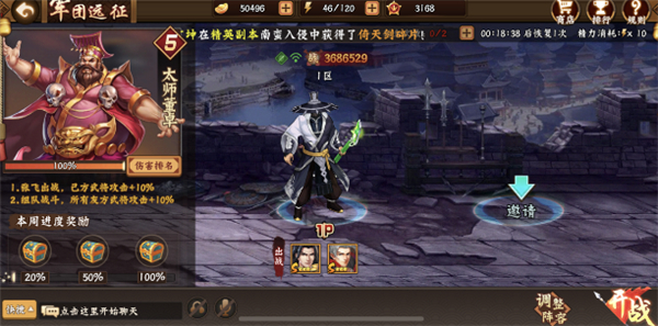 而每天免费的两次军团远征副本则可以让玩家拿到大量的军功,这些军功可以提升玩家的军团技能等级,而到了中后期玩家军团技能点满之后,还可以在商城内用军功去兑换武将券、突破石、觉醒丹、金币等大量日常消耗性资源,对于玩家属性及战力成长有着非常大的帮助。