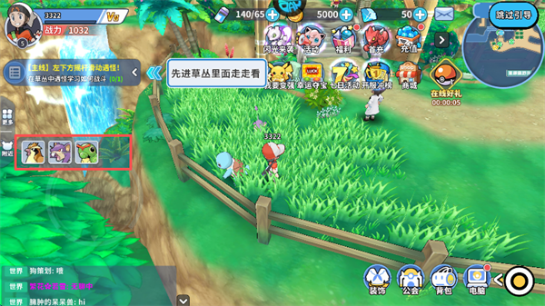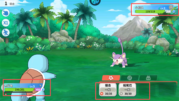 7、随后玩家就可以进入草丛中寻找精灵开始第一场战斗了,在可遇怪区域,会在屏幕左侧显示可遇精灵种类,极大方便了玩家想要抓取喜爱的精灵。