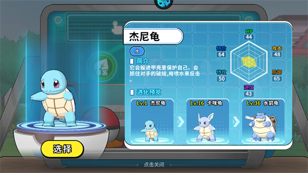 13、杰尼龟经过战斗也会升级学会新的技能。