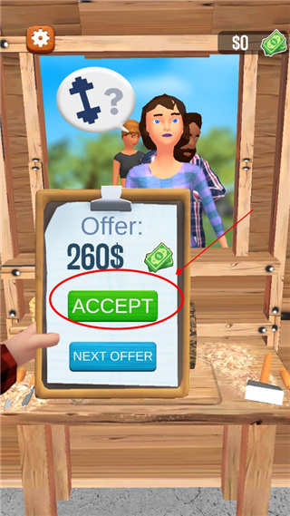 2、然后再次点击“accept”开始制作木工艺;