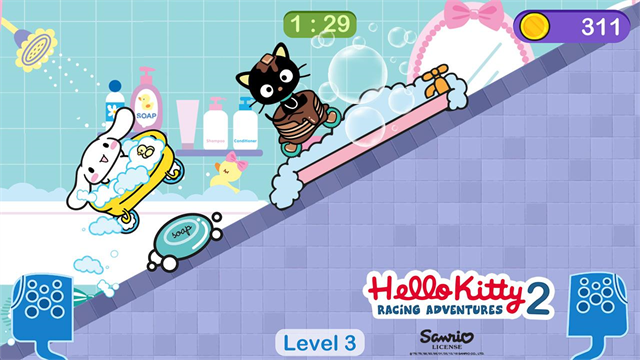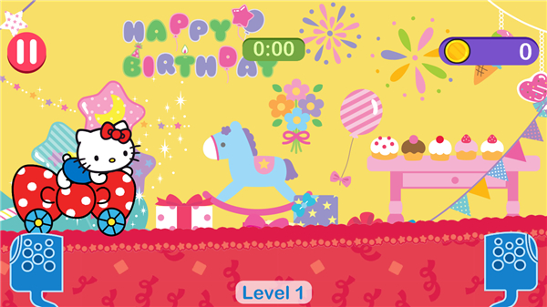 操作起来很简单,左下角是刹车,右下角是油门,按住油门开始跑,注意控制速度,尤其是在下坡的时候要多踩刹车。整体来说,这是一款适合休闲娱乐的游戏,特别适合喜欢Hello Kitty和甜美风格的玩家。虽然广告已经完全删除了,但玩法还是有些小改进,让游戏体验更好了。如果你喜欢轻度冒险和跑酷类游戏,这款应该会很对你的胃口!
