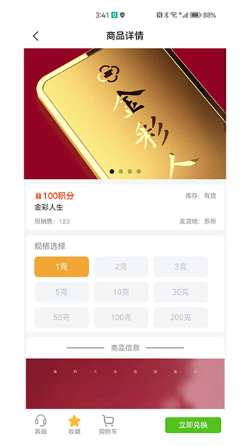 这个App挺方便的,首先你可以选择门店自提或者邮寄,非常灵活。其次,它提供的产品种类很丰富,从金条到金币都有,重量也不一样,满足不同需求。而且所有产品都是经过严格审核的正品,这点让我觉得放心不少。