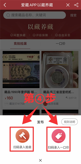4、根据实际需求选择“拍卖”或“一口价”模式,并按照提示扫码爱藏评级币背后二维码。