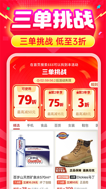 2、百亿补贴:精选补贴全网最热销品牌商品,直接降价,购物不必做算术题。