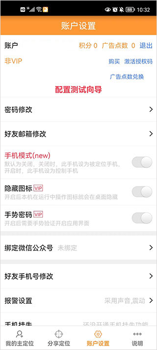 2、配置完成后,重启被定位的手机,检查软件是否已成功登录账号。如果未登录,手动登录后再重启设备。如果已经登录,则可以开始测试。