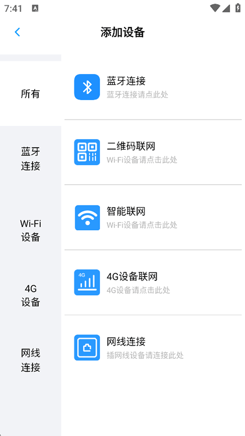 2、该平台提供了蓝牙连接、二维码联网、智能联网、4G设备联网、网线连接等连接方式;