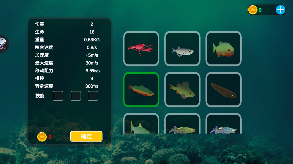 新手攻略里提到要先改语言为中文,再选择难度和场景。想玩的话可以从免费模式开始攒鱼币,然后用螃蟹自杀攒钱。这种玩法有点像“发育流”,前期猥琐点,升级后再去打大 boss。到了二十多级就能打鲨鱼,三十级以上甚至能手撕苍龙。