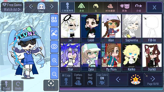 你可以在这款游戏中定制90个Gacha角色,包括10个主要角色和90个额外角色。你可以独立适应不同的身体部位,比如头发、肤色、眼睛和时尚。你的角色有很多衣服可以选择,还有很多配饰。