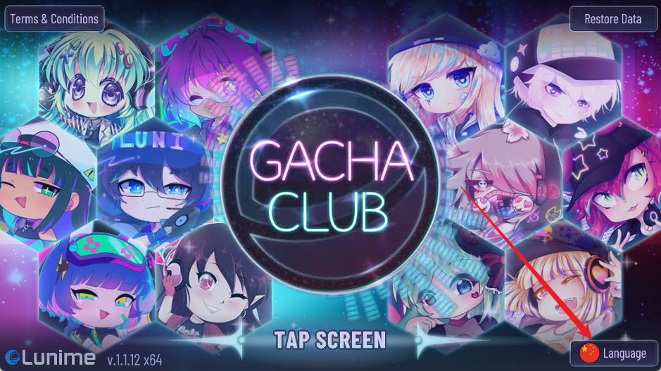 1、下载并安装加查俱乐部官方正版后,启动游戏进入首页,在启动页面点击下方的Language按钮