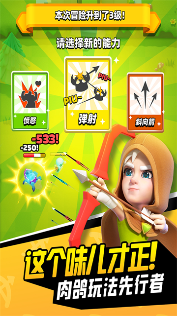 3、通关游戏关卡可以收获更多强力的弓箭和技能;