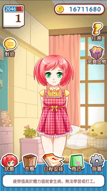 《爱养成无限金币版》是一款全新的养成游戏,玩家需要将一个12岁的小女孩抚养到18岁,体验从萝莉到御姐的转变过程。游戏画面精美,场景丰富多样,每个场景都有独特的故事情节,玩家可以通过不同的选择探索35种结局。游戏中还加入了换装系统,玩家可以尝试各种风格的服装和装饰,甚至有机会获得隐藏服装。