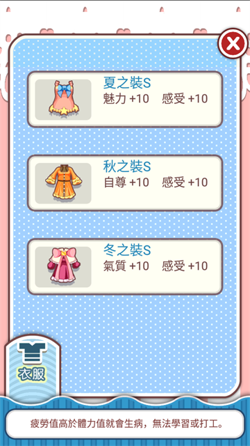 PS:每月可以对话减疲劳。你也可以根据你的体力和疲劳值调整一下休息的时间,如果最后威严的属性差点可以用道具来补。