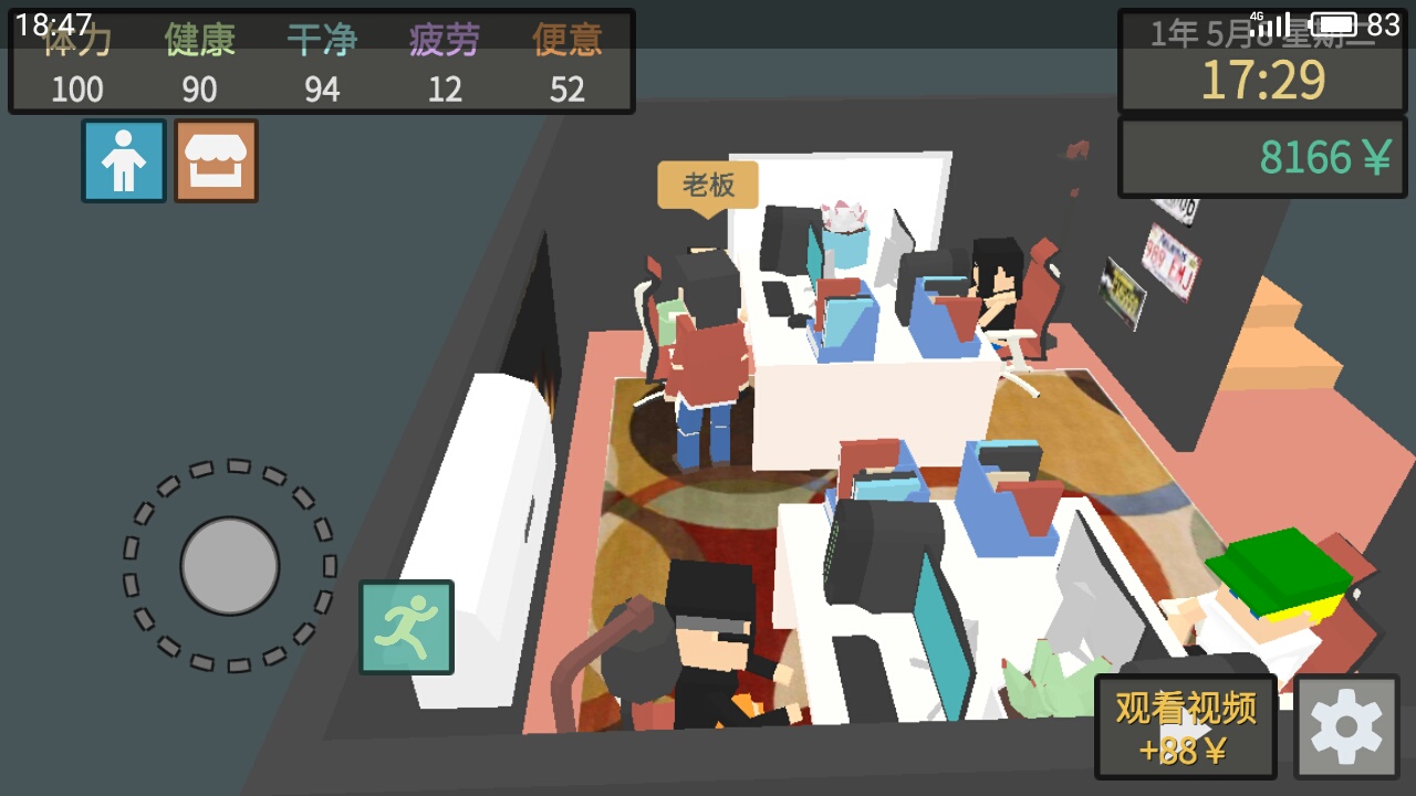 《方块人的简单生活》是一款超自由的生活模拟手游,新人玩家可以打工赚钱、当老板,甚至捡垃圾谋生。游戏中有各种职业选择,属性系统也很详细,包括体力、健康、干净和疲劳,这些都会影响你的游戏体验。新手攻略里教了很多赚钱的技巧,比如打工吃士力架循环,听起来有点繁琐,但坚持下来确实能慢慢变强。游戏的画面和任务设计都很棒,让人感觉真实又有趣。