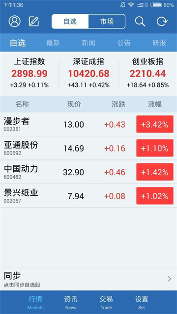 4、自选股:多平台云同步,随时掌握自选股信息。