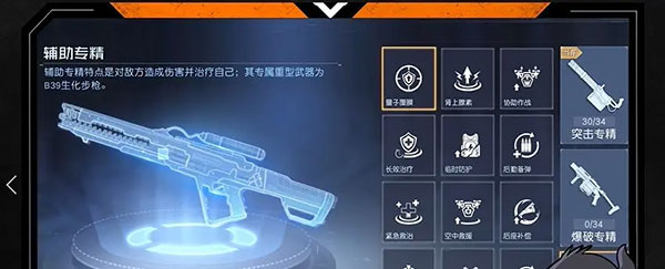 例如,突击专精对应着M134重型机枪;爆破专精对应着M32榴弹发射器;辅助专精对应着B39生化步枪。