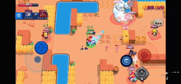 爆炸麦克一直是被低估的英雄,普通攻击的高额伤害以及大招短暂击退效果都让他在游戏对局中的能力立体且全能。在面对柯尔特时,爆炸麦克可以利用同样的方式逼迫柯尔特的走位,因为爆炸麦克的普通攻击一样也是可以越过墙体等障碍物直接到达攻击落点,因此柯尔特就很难在知道爆炸麦克位置后,找到任何一丝机会打到爆炸麦克。