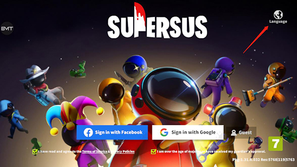 1、进入游戏后点击右上角的语言设置;