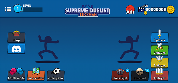 1、简约卡通的画风,经典火柴人格斗类游戏