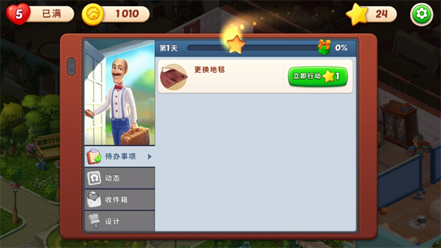 成功过关之后,就会获得任务所需要的星星了,同时还有过关奖励的一些金币,这个时候就可以回去完成更换家中物品的任务了。