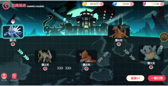 2、每天可进行1次关卡重置,每日凌晨5点刷新次数