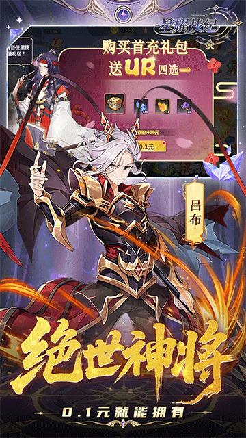 2、充值比例为1:10,首冲0.1元即可获得顶级UR输出武将,闯关快人一步!