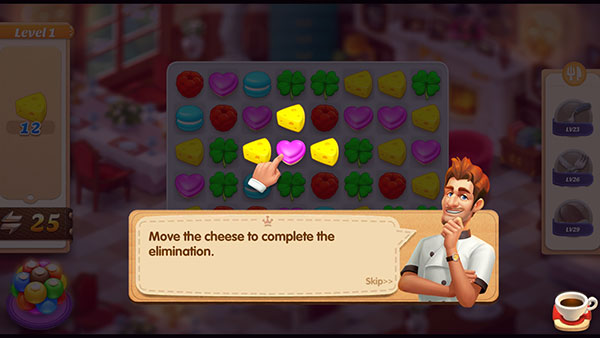 游戏中每个房间都有独立的故事线,玩家可以体验到家庭游戏和装饰的乐趣。除了基础的三消玩法,还有合成瓷砖、制作纸飞机等特色玩法,让消除过程充满惊喜。